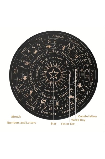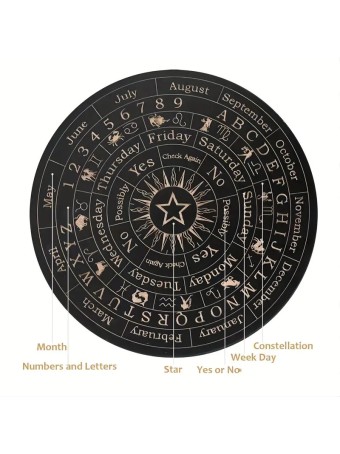 15cm natural wood material, solid and durable, comes with smooth surface which is lazer carved. It can be used for dowsing, divination, crystal healing, witchcraft, bringing you positive energy, peace of mind and can help you manifest your destiny by aiding your decisions making process. The design of this board is a mysterious medieval divination which can add a fantastic, mysterious, occult feeling to your space and inspire your imagination.