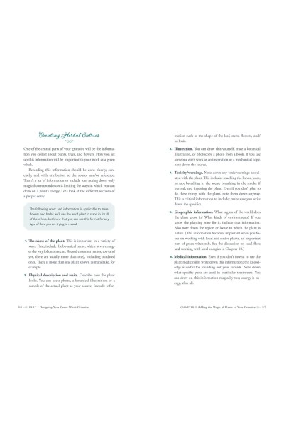 A grimoire is essential for any witch wanting to capture and record spells, rituals, and secret ingredients. And for a green witch, a perfect place to reflect upon the power of nature, and document the stones, plants, flowers, oils, and herbs used in her practice. The Green Witch's Grimoire finally is a place for all your prized knowledge.