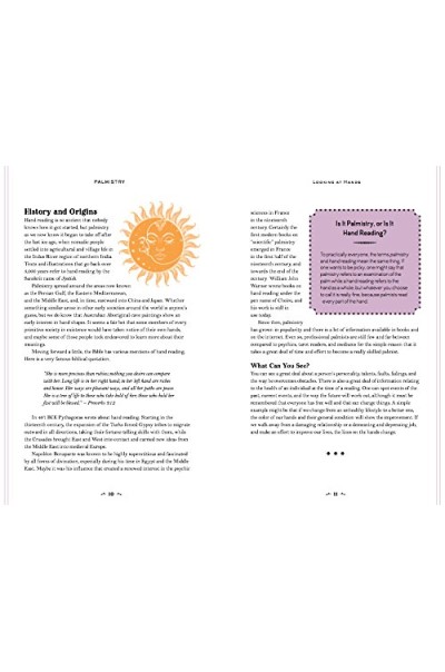 From analyzing palms, fingers, fingerprints, mounts, and nails, find the hidden strengths and weaknesses within yourself and others. Included inside the back cover is a beautifully illustrated 18 x 24-inch wall chart that gives the key elements about palmistry in one convenient reference.