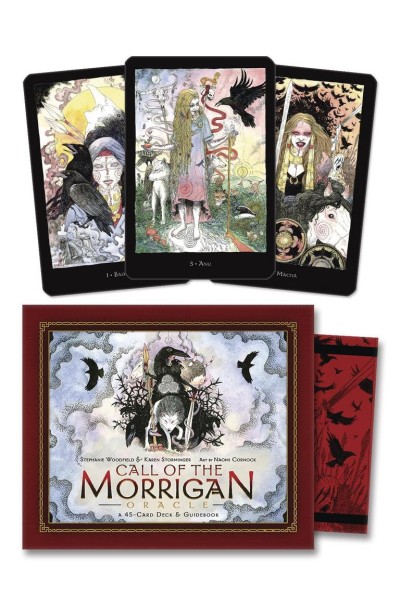 This striking 45-card oracle deck and accompanying horizontal guidebook are a devotional offering born from the sacred work of three priestesses deeply devoted to the Morrigan. Infused with her fierce, transformative energy, the deck invites you to explore her mysteries, receive her wisdom, and embody the courage she demands.