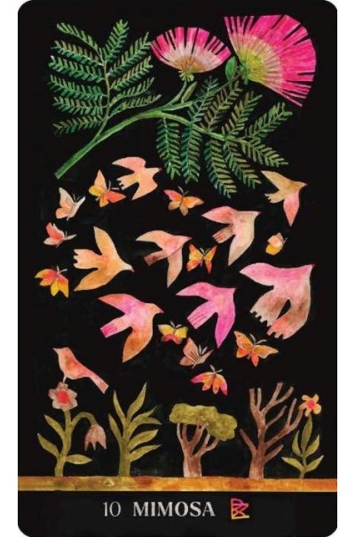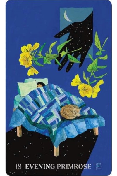 The deck is divided into four suits—Ablaze, Afloat, Adrift, and Amidst—each offering unique energetic signatures drawn from the colours, elements, weather, emotions, and landscapes associated with the plants featured. From Calendula to Yarrow, each card highlights a single plant, complete with its name and suit, set against vivid artwork. Metallic sprayed edges and a unifying card back illustration add a shimmering touch to this stunning set.