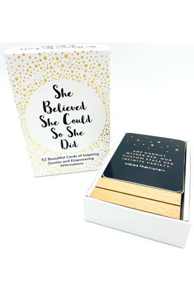 A deck of 52 cards containing inspirational quotations and life-affirming statements ready for you to place on display in the holder included. Inside every girl is a diamond core of strength that helps them achieve anything they put their mind to. For some extra sparkle, read one of these beautiful cards and be inspired to conquer the world with grit and grace.