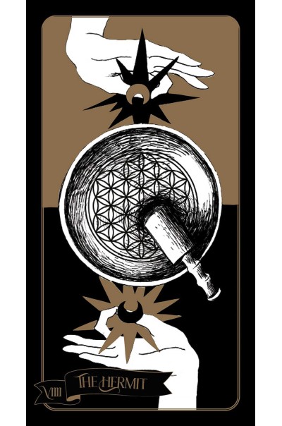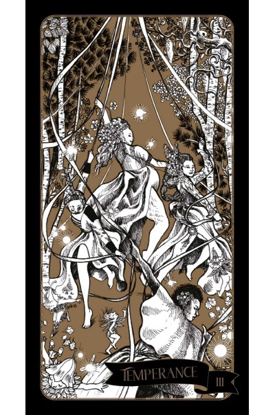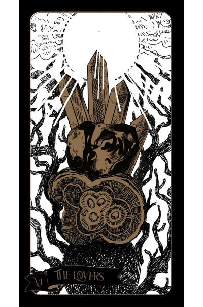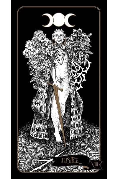 The Major Arcana cards embrace the great movements of the wheel of the year while the Minor Arcana cards are tools in the service of the Major Arcana, depicting sabbats, seasons, moon cycles, sacred figures, constellations, planets, crystals and plants. Each element has its own force, but together the cards take on different symbols.