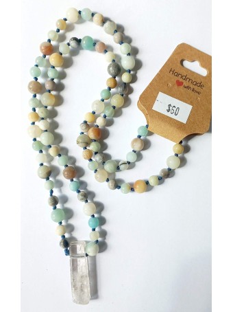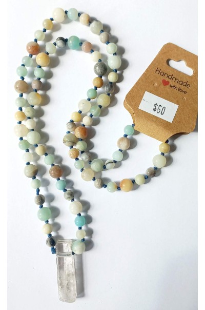 Each bead is carefully hand-tied creating a strand imbued with sacred rhythm, intention, and mindful energy. Inspired by the soothing hues of the ocean, this necklace evokes serenity, emotional balance, and a deep sense of connection to the natural world.