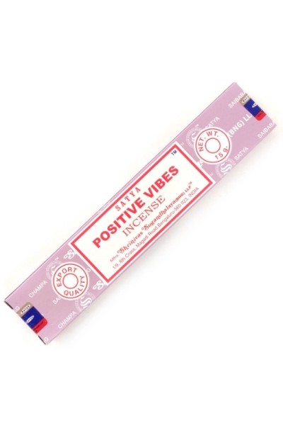 Positive Vibes Incense Sticks from the Satya Ayurvedic range of incense. This incense is from the Shrinivas Sugandhalaya factory where the famous original Satya Sai Baba Nag Champa Incense is produced. It is traditionally made from a sandalwood base to which are added a variety of flower oils. Each pack contains 15gms natural incense sticks and burns for approximately 45 minutes.