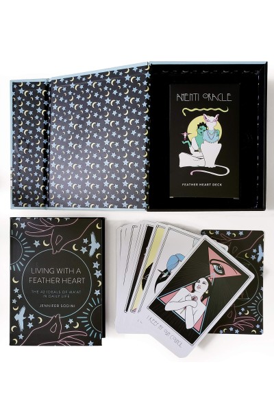 From Jennifer Sodini, founder of the acclaimed conscious media platform Evolve and Ascend, and illustrator Natalee Miller, the Amenti Oracle Feather Heart Deck brings the ancient Egyptian wisdom of Ma’at—the principle of truth, balance, and harmony—into the modern world.