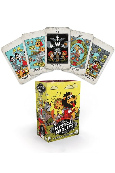 Mystical Medleys is a delightfully offbeat and colourful take on traditional tarot. Inspired by vintage 1930s rubber hose animation, this deck brings playful energy and a mischievous twist to your readings, while still rooted in the classic Rider-Waite-Smith system.