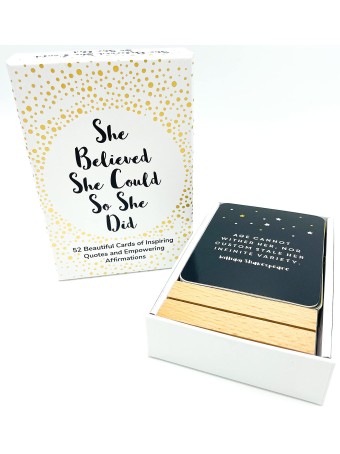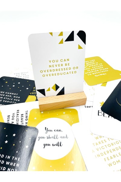 A deck of 52 cards containing inspirational quotations and life-affirming statements ready for you to place on display in the holder included. Inside every girl is a diamond core of strength that helps them achieve anything they put their mind to. For some extra sparkle, read one of these beautiful cards and be inspired to conquer the world with grit and grace.