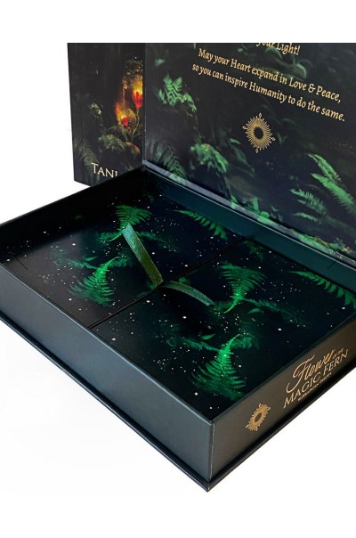 Flower of the Magic Fern is a classic 78-card tarot deck. The structure is identical to the classic tarot deck, with both Major and Minor Arcanas. Major Arcana is often complex and significant, with 22 cards to reveal the major life events and energies that are influencing what is happening now. Minor Arcana is presented through four elements - Air, Water, Fire and Earth with fourteen cards in each - Page to Ace. The role of each element is very specific, and as they have their own directions on the medicine wheel representing: Intellect, Emotions, Actions and Manifestation in the Material World.